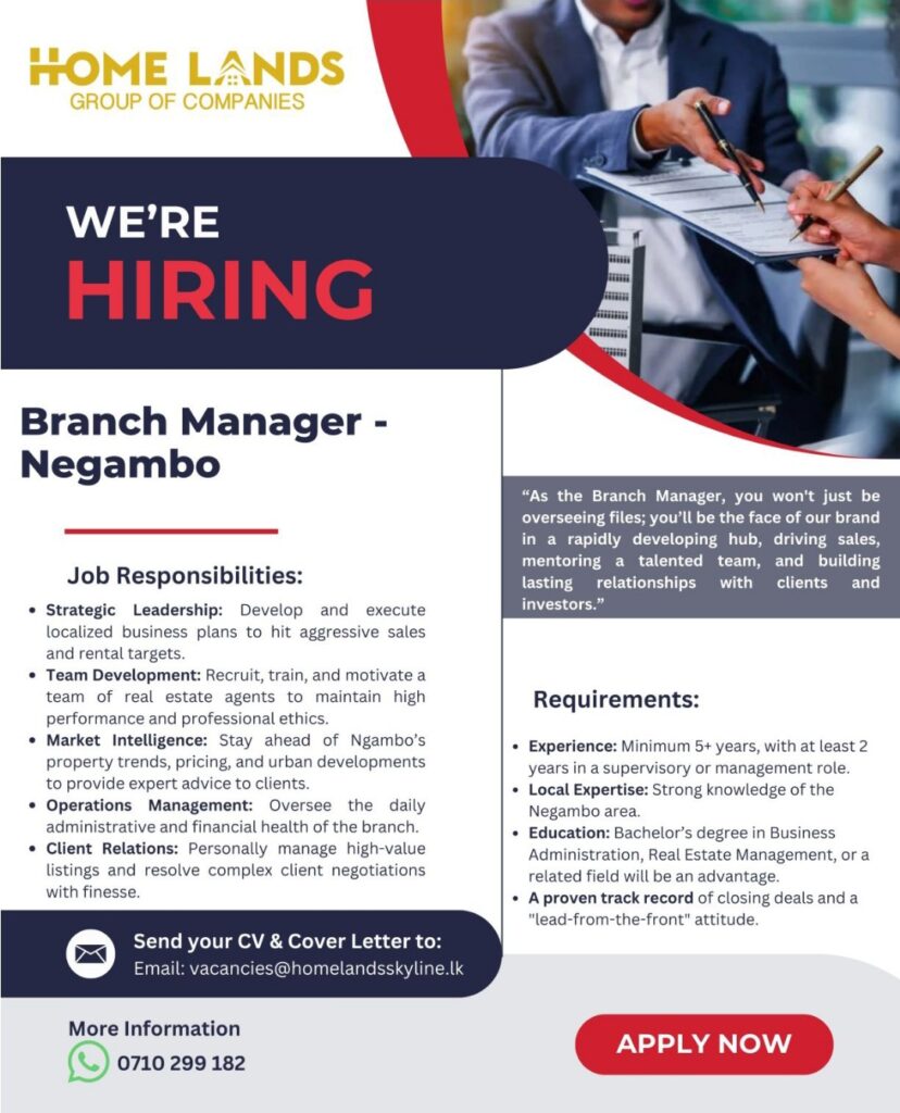 Negambo is more than just a location; it’s the heartbeat of the city’s expansion. We need a Branch Manager who understands the unique pulse of this market and knows how to turn local insights into global standards of service.