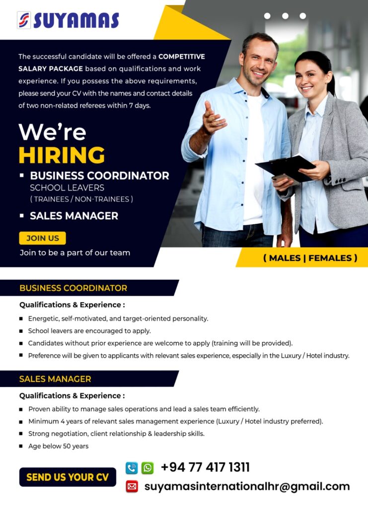 Coordinator Manager Sales and Marketing Business Coordinator/ Sales Manager 7 days ago Deadline :- 19th March 2026 Company:- Suyamas International Apply Now :- suyamasinternationalhr@gmail.com Post navigation Previous: Site Engineer/ Office AssistantNext: Cyber Security Analyst Related Vacancies Art Driver Finance and Accounts IT Jobs Sales and Marketing Security Technician IT Assistant / IT Technician/Sales /HR/ Accounts/Driver / Security/ Craftsman 9 hours ago Data Entry operator IT Jobs Sales and Marketing Technician Data Entry Operator/ Website Maintenance Officer/ Salesman/ PC/Laptop Technician 9 hours ago Coordinator Sales and Marketing Sales Coordinator 22 hours ago