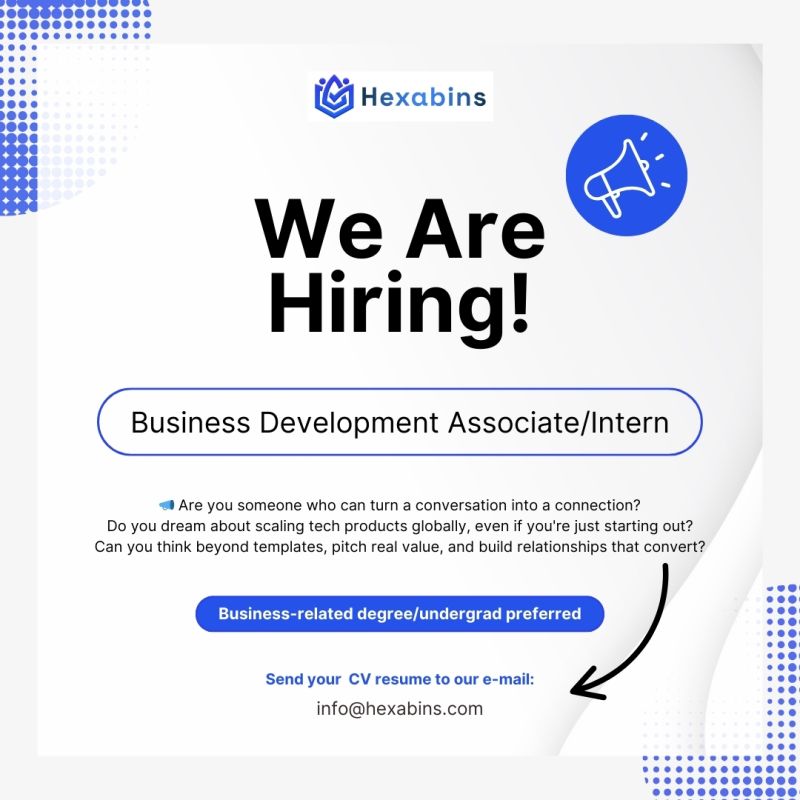 Send your CV (and any portfolio, pitch, or cool idea) to mailto: info@hexabins.com 📌 Subject: “Business Development Intern / Associate – [Your Name]”