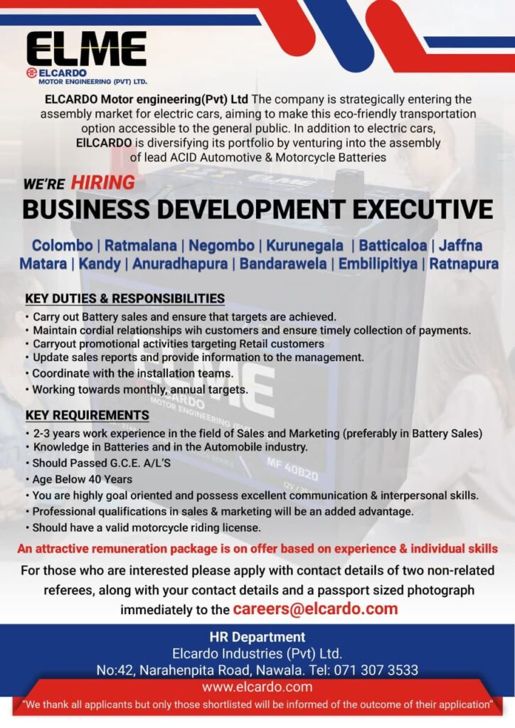 Apply now:- careers@elcardo.com