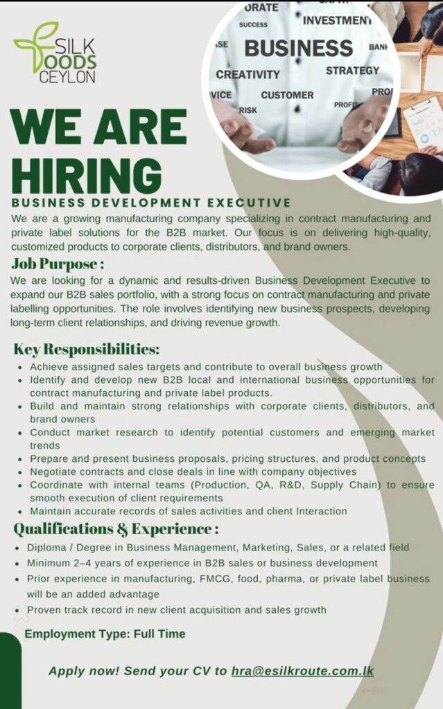 Apply now :- hra@esilkroute.com.lk