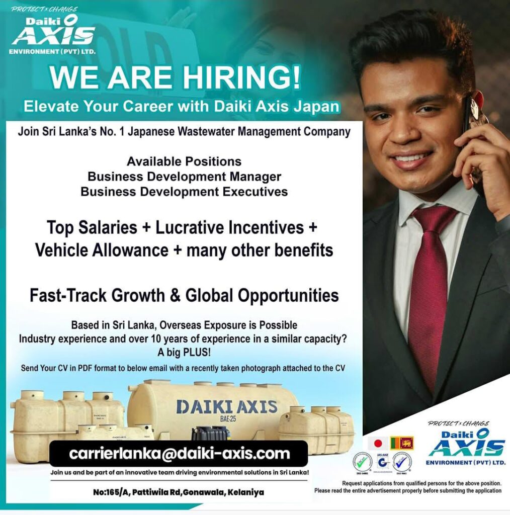 Apply Now! Send your CV to carrierlanka@daiki-axis.com