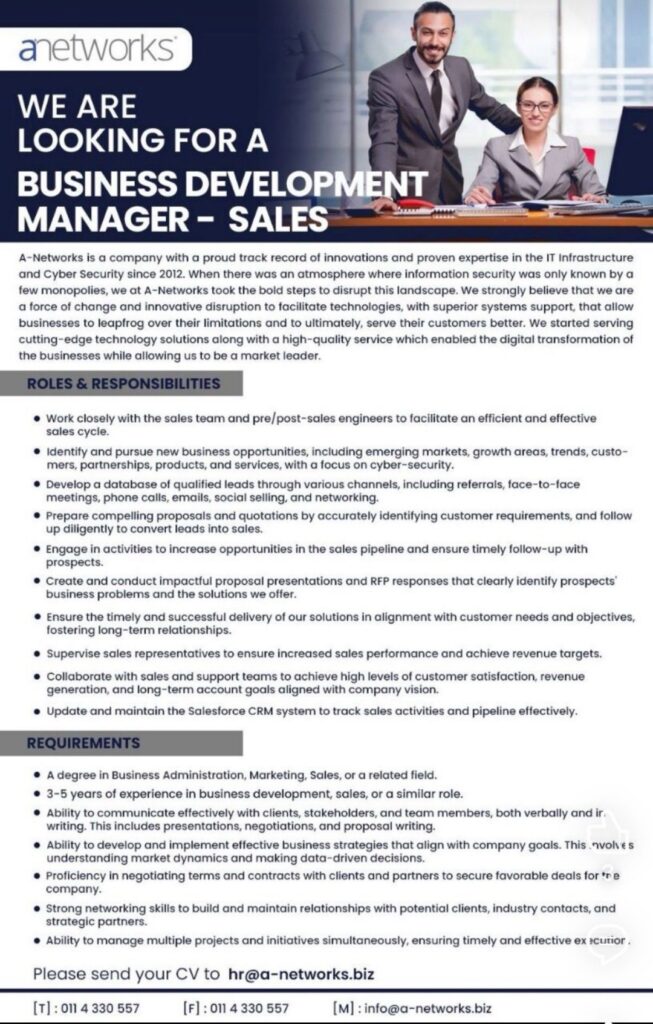 We’re hiring a Business Development Manager Sales!