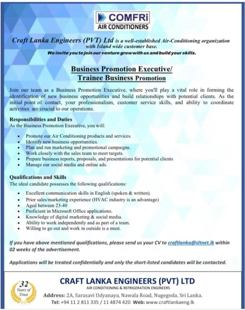 ๐ฉ Apply now! Send your CV within 2 weeks to: craftlanka@sltnet.lk / secretary@craftlankaeng.lk