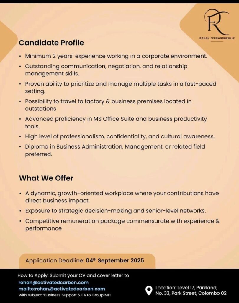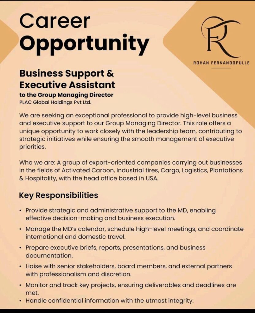 We are on the lookout for a talented professional to join our leadership team as Business Support & Executive Assistant to the Group Managing Director of PLAC Global Holdings Pvt Ltd