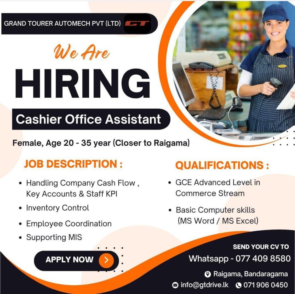 GRAND TOURER AUTOMECH is looking for a Cashier Office Assistant (Female) β closer to Raigama