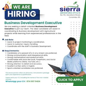 Deadline:- 10th November 2025 We're Hiring! A leading coconut processing factory in Dankotuwa is looking for a: Position: Business Development...