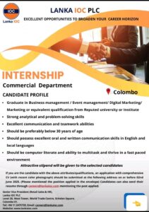 Deadline:- 2nd June 2025 Company:- Lanka IOC PLC Send your CV :- careers@lankaioc.com Graduate in Business Management Event Management/ Digital...