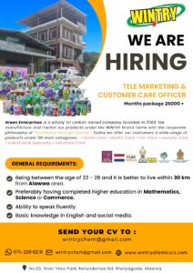 Deadline :- 10th September 2025 Company :- Space Hub Pvt ltd Location :- Malabe Apply Now :- contact.spacehub@gmail.com Qualifications in...