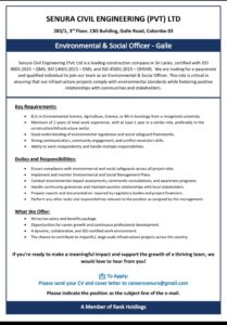 Deadline:- 19 th August 2025 🚨 We’re Hiring! – EHS Officer (Contract) 📍 Location: Rathmalana, Sri Lanka 💼 Employment Type:...