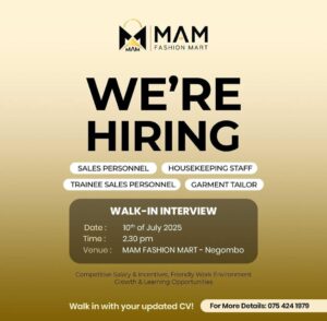 Deadline:- 5th December 2025 📌 𝗪𝗲’𝗿𝗲 𝗛𝗶𝗿𝗶𝗻𝗴 | 𝗦𝗮𝗹𝗲𝘀 𝗘𝘅𝗲𝗰𝘂𝘁𝗶𝘃𝗲𝘀 We are looking for Sales Executives across:Colombo | Ratmalana |...