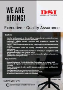 Deadline:- 12th August 2025 We’re Hiring! Executive – Dyeing 📍 Location: Teejay Lanka PLC – Avissawella Step into a career...