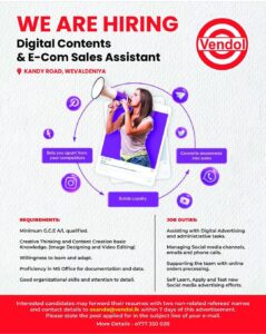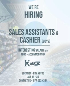 Deadline:- 28th October 2025 Company:- Queen Store Pvt ltd Location:- Ganemulla Apply now :- queenshoprivatelimited@gmail.com