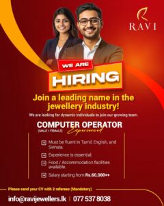 Deadline:- 4th September 2025 ๐ผ Employment Opportunity at B.P. de Silva Jewellers (Private) Limited ๐ผ We are a member of...