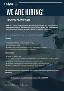 Deadline:- 10th November 2025 π¨ Weβre Hiring! π¨ π§ Available Positions: Technical Assistant β G.C.E. O/L & A/L with NVQ...