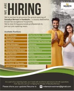 Deadline :- 15th December 2025 Unlock a Career with Athgira Hotels! Explore Udawalawe and join our dynamic team. 076 8...