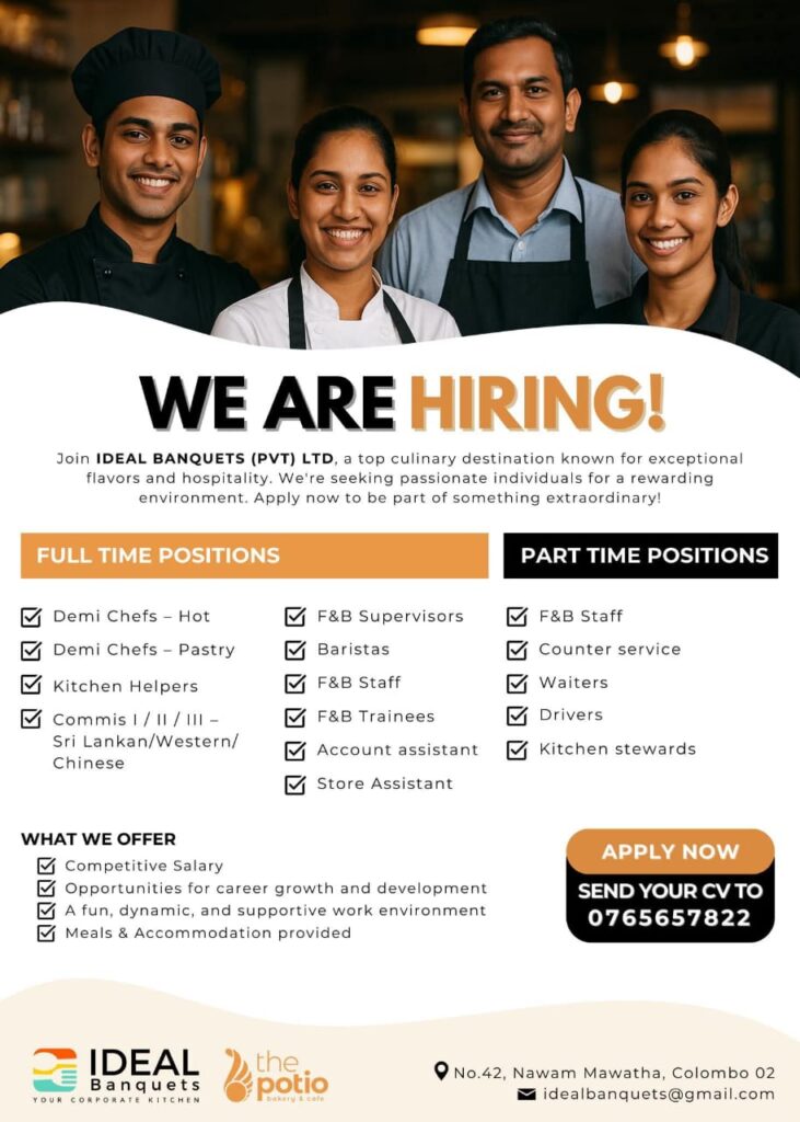 💼 If you’re looking for a dynamic work environment, great learning opportunities, and a chance to be part of one of Colombo’s most exciting F&B teams — we’d love to hear from you!