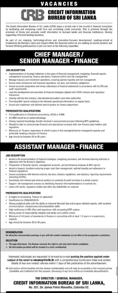 Apply Now:- vacancy@crib.lk