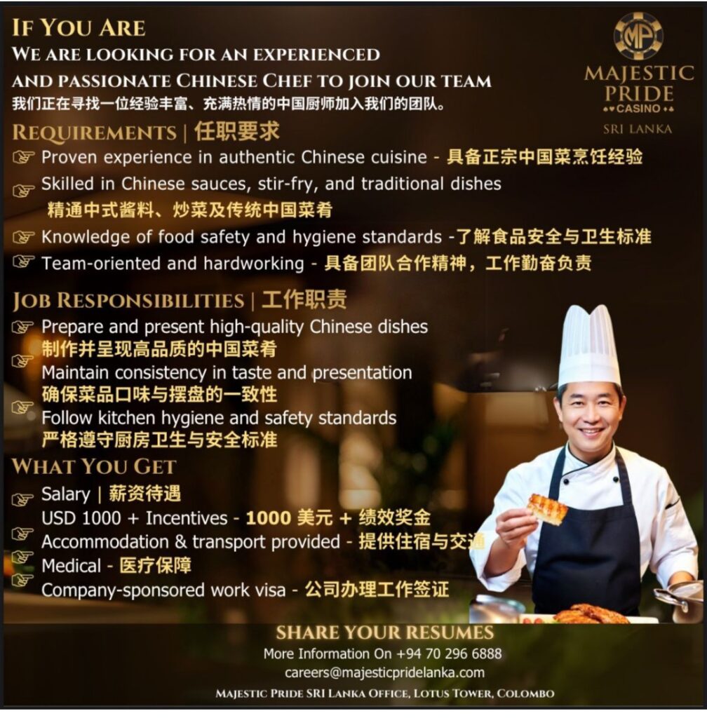 Apply Now:- careers@majesticpridelanka.com