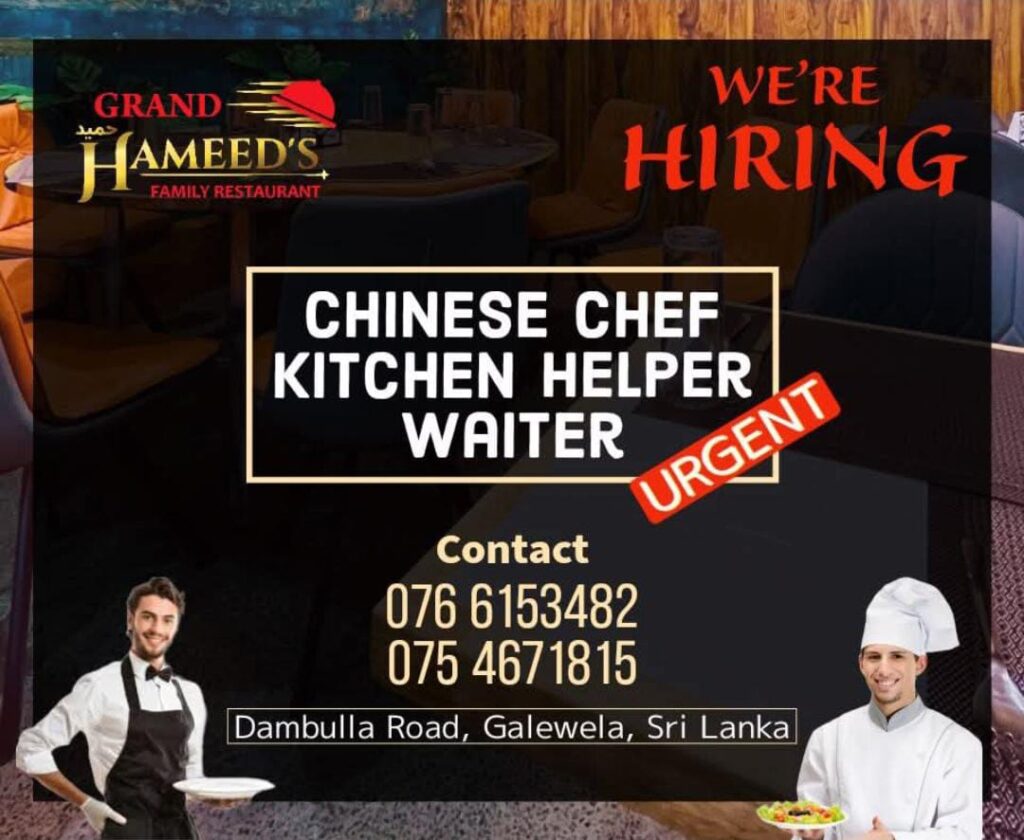 π’ URGENT STAFF HIRING β Grand Hameed’s Family Restaurant π’