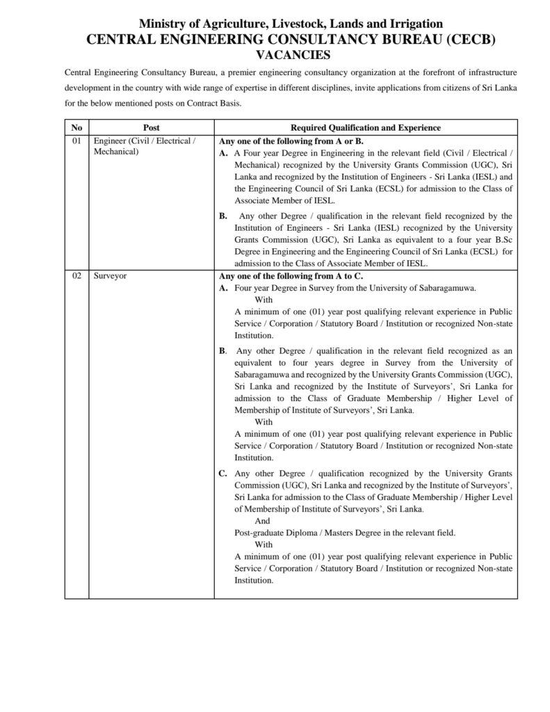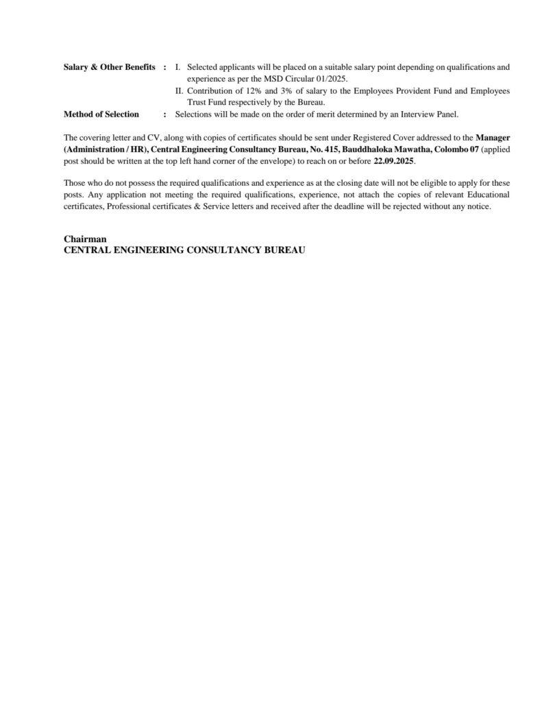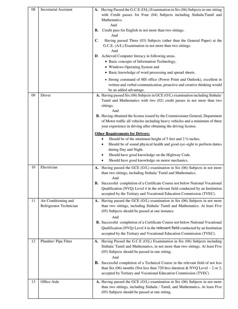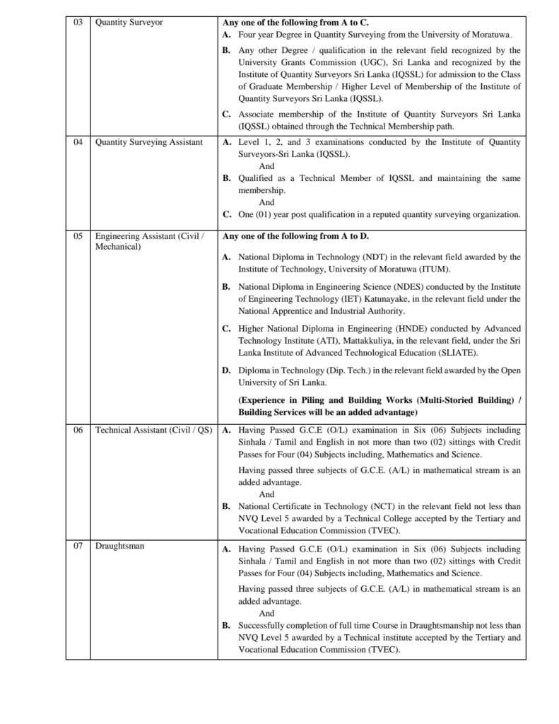 Civil Engineer, Electrical Engineer, Mechanical Engineer, Surveyor, Quantity Surveyor, Quantity Surveying Assistant, Engineering Assistant (Civil/Mechanical), Technical Assistant (Civil/QS), Draughtsman, Secretarial Assistant, Driver, Electrician, Air Conditioning and Refrigerator Technician, Plumber/Pipe Fitter, and office Aid.