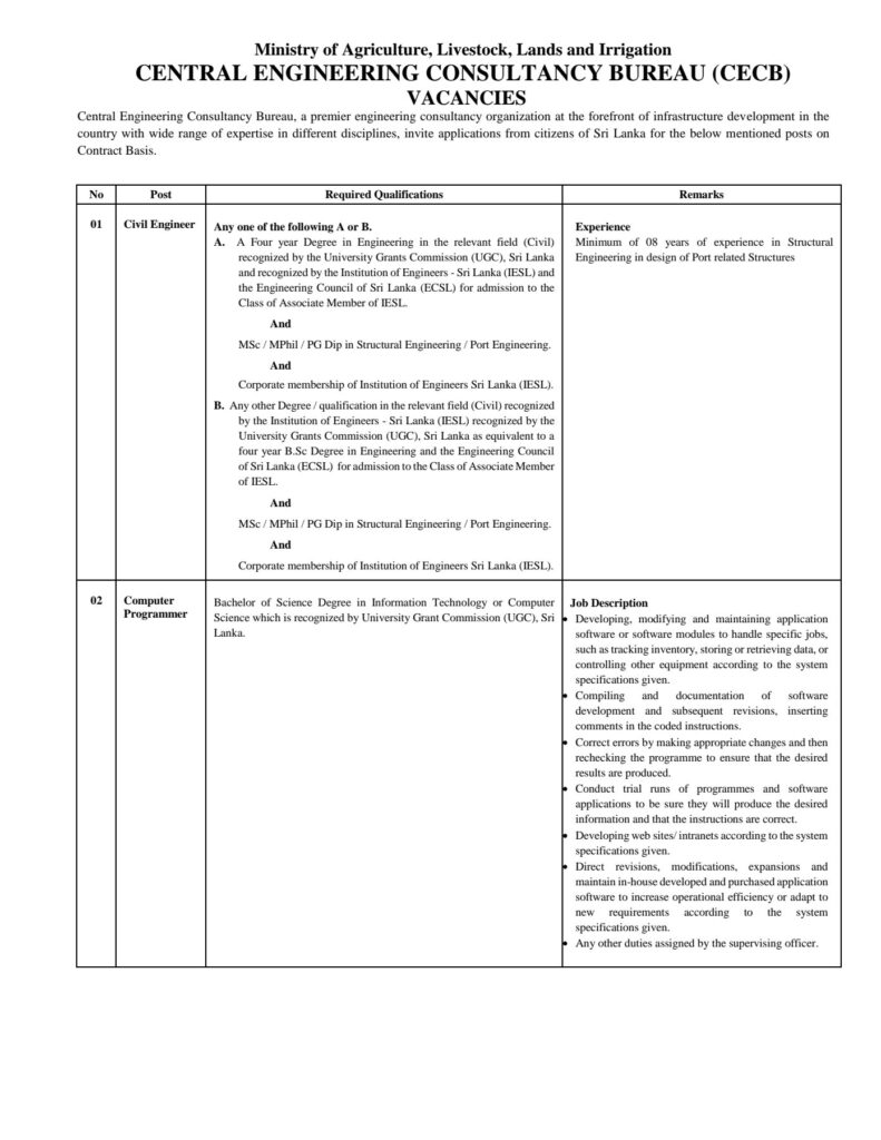 Vacancy for Civil Engineer, Computer Programmer, Draughtsman, Secretarial Assistant