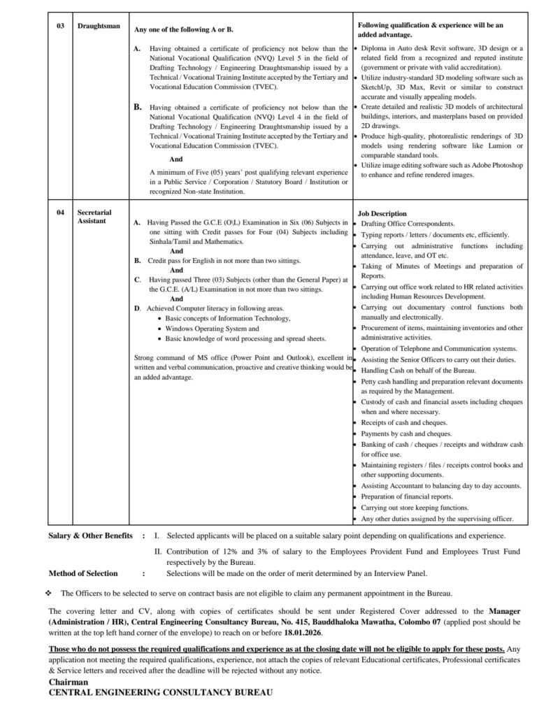 Civil Engineer/ Computer Programmer/ Draughtsman/ Secretarial Assistant
