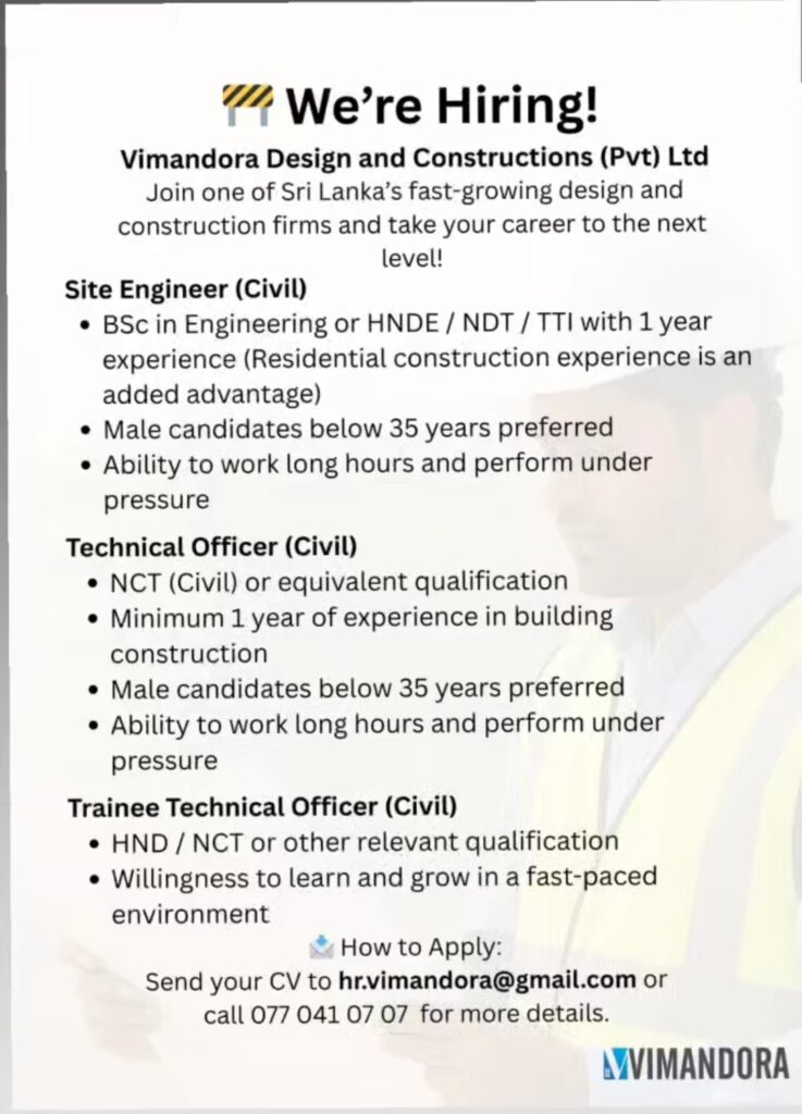 Civil Engineering – Site Engineer / Technical Officer/ Trainee Technical Officer