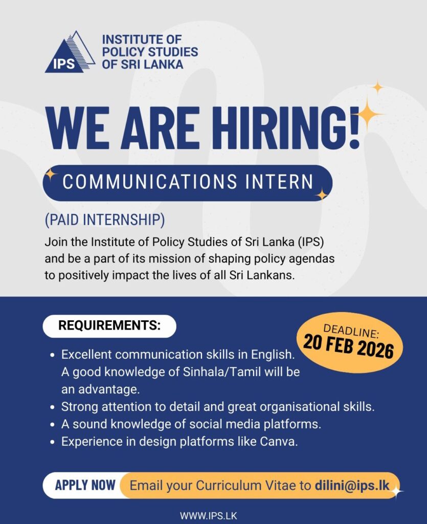 Join IPS as a Communications Intern (Paid) and help shape policy that impacts Sri Lanka.