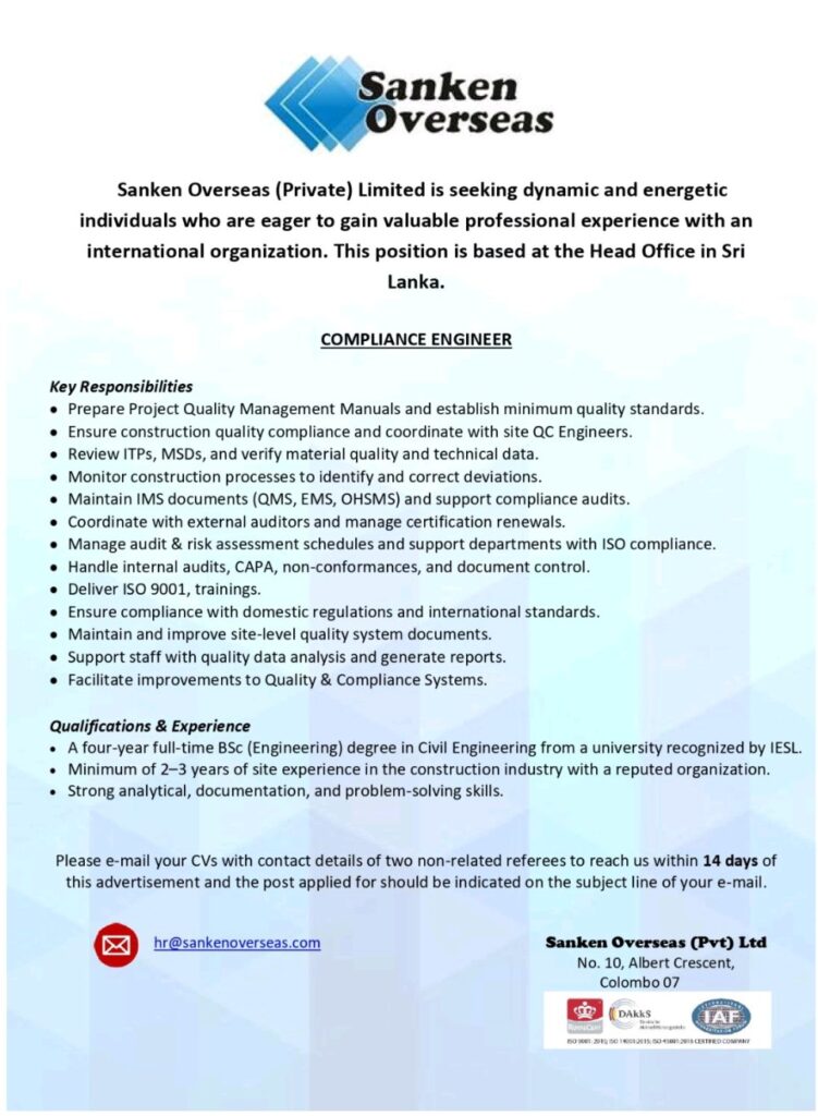 Apply Now:- hr@sankenoverseas.com