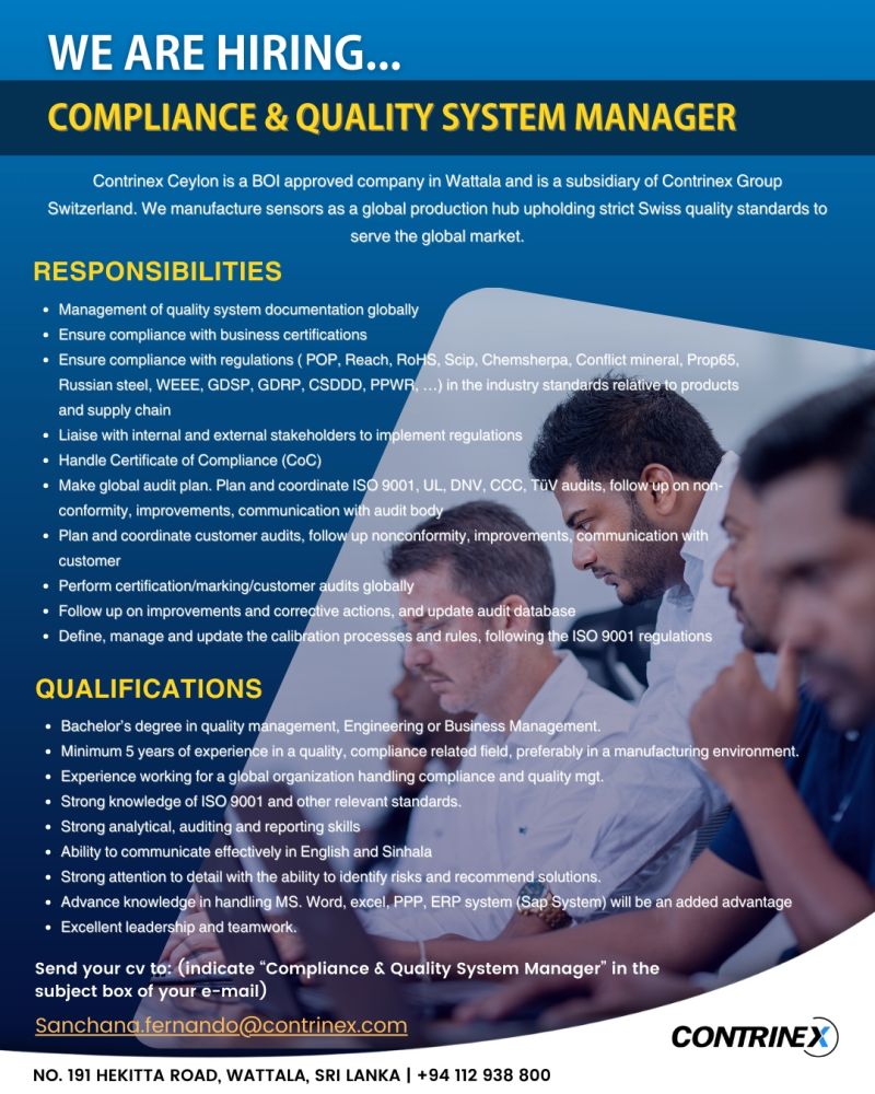 Contrinex Ceylon is a BOI approved company in Wattala and is a subsidiary of Contrinex Group Switzerland.