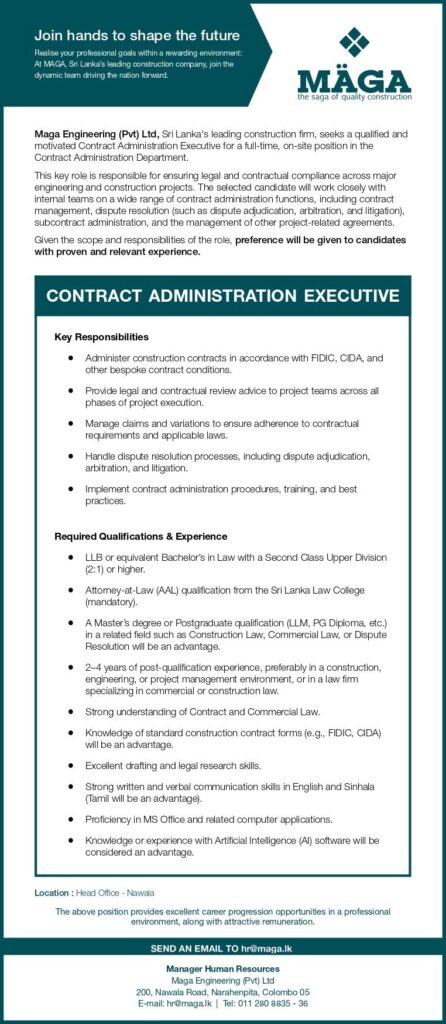 Apply now :- hr@maga.lk