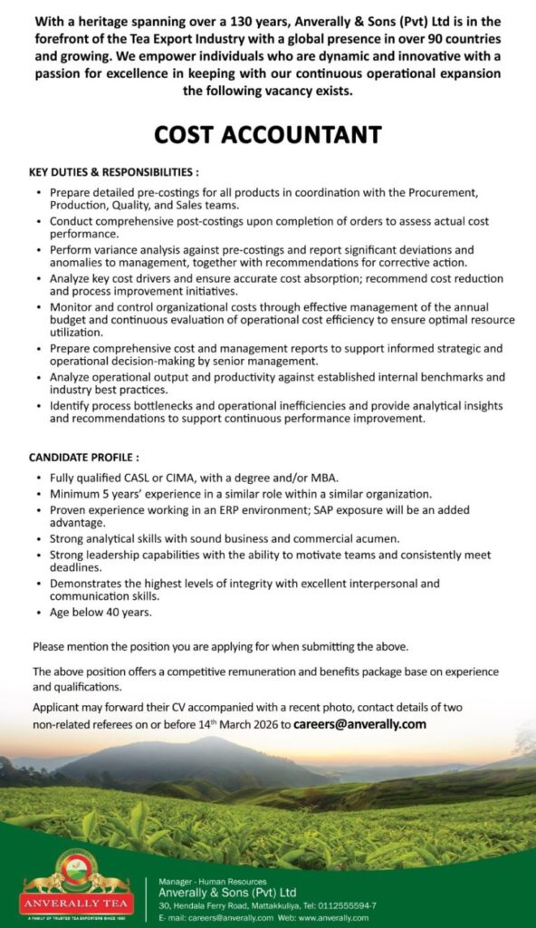 We are looking for a results-driven Cost Accountant with strong analytical capability and commercial acumen to lead pre & post costings, variance analysis, budgetary control, and continuous cost optimization initiatives.