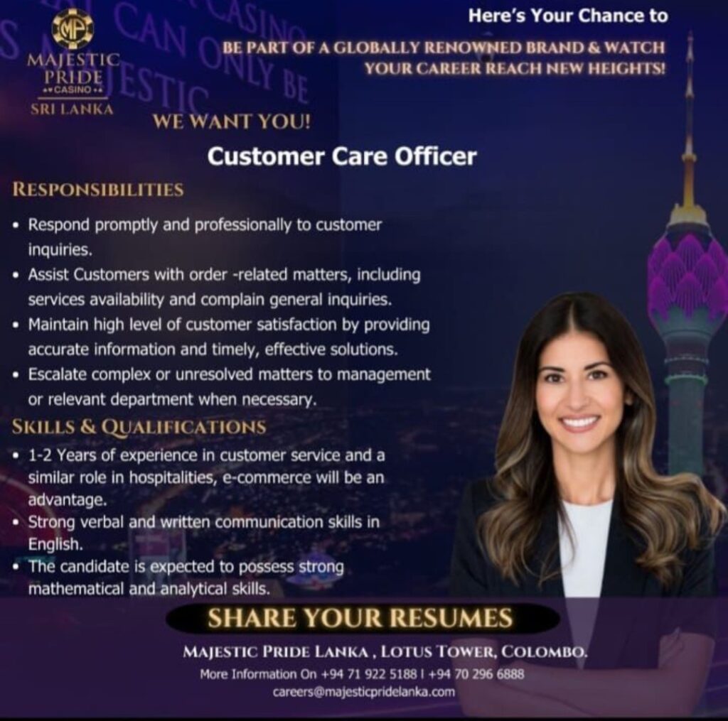 We’re looking for a Customer Care Officer to provide top-notch service, solve problems, and keep our customers smiling. If you have 1-2 years of experience in customer service and a knack for communication and analytics, we want you!
