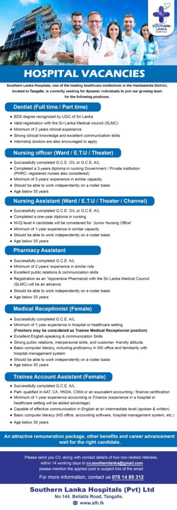 Apply now :- CV.southernlanka@gmail.com