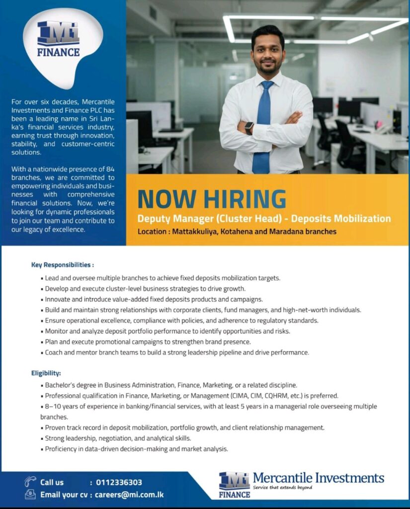 Deputy Manager (Cluster Head) – Deposits Mobilization