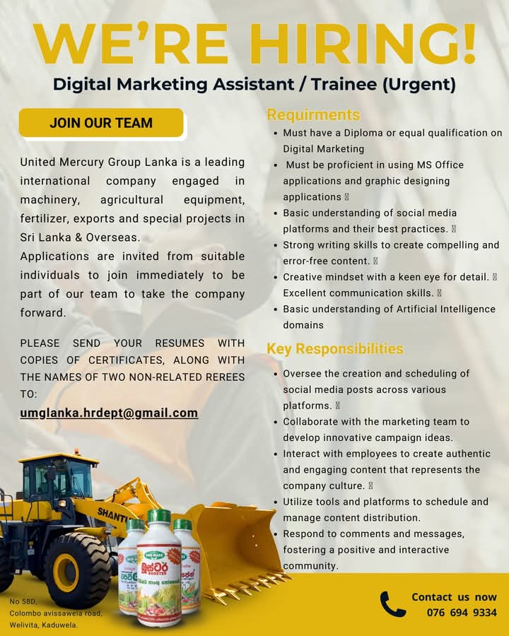 ✨Apply Now:- umglanka.hrdept@gmail.com