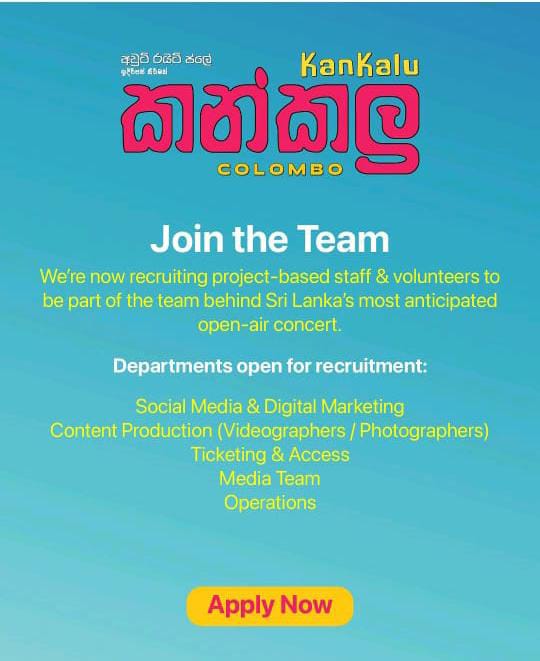 We’re recruiting passionate and energetic people to join the Kan Kalu 2025 team Sri Lanka’s biggest open-air music experience by Outright Play. You can apply as a Volunteer or Project Staff Member.