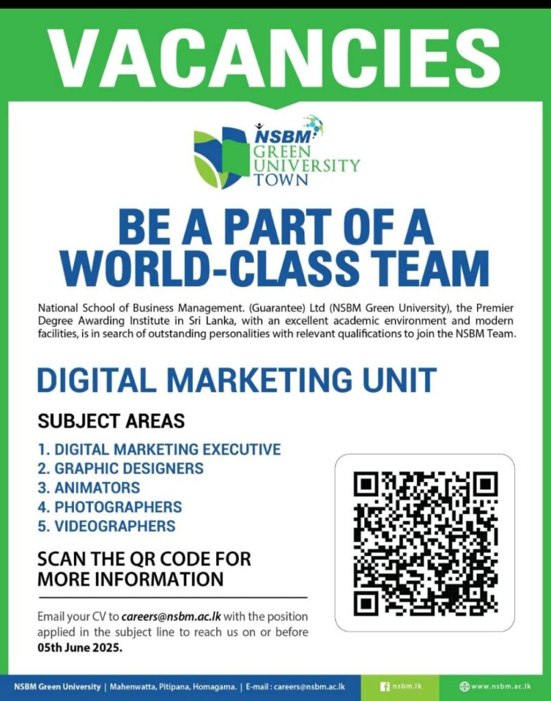 For More Details And To Apply, Scan the QR Code or Send Your CV to careers@nsbm.ac.lk.