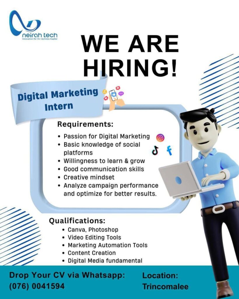 Neirah Tech is looking for passionate and creative minds to join us as Digital Marketing Interns in Trincomalee!