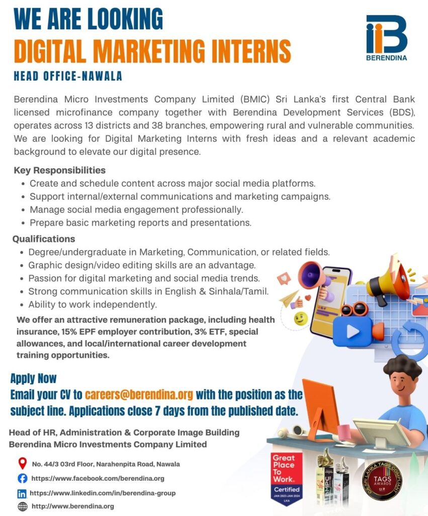 Apply now :- careers@berendina.org