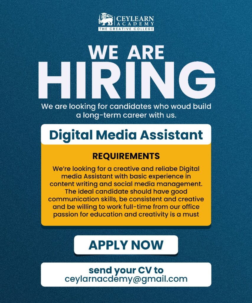 Join our team as a Digital Media Assistant at CeyLern Academy!