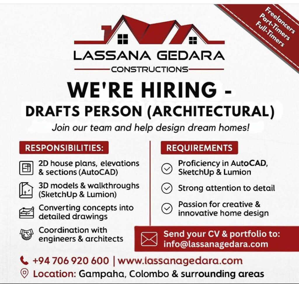 Join Lassana Gedara Constructions (Pvt) Ltd and help us design dream homes π‘β¨