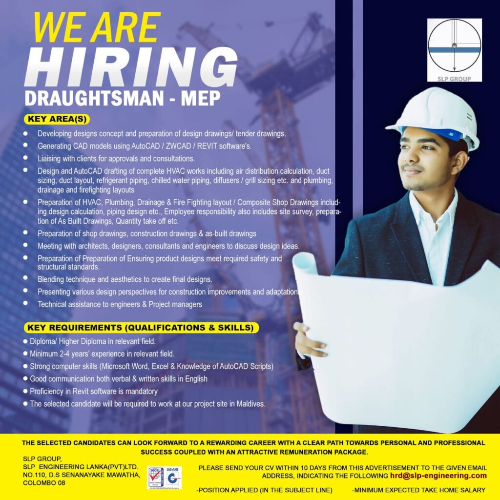 We are seeking a skilled and detail-oriented Draughtsman – MEP to join our team in the Maldives. The ideal candidate will be responsible for preparing accurate MEP drawings, coordinating with engineering teams, and supporting project execution with precise technical documentation. If you meet the criteria below, you could be the candidate we are looking fo