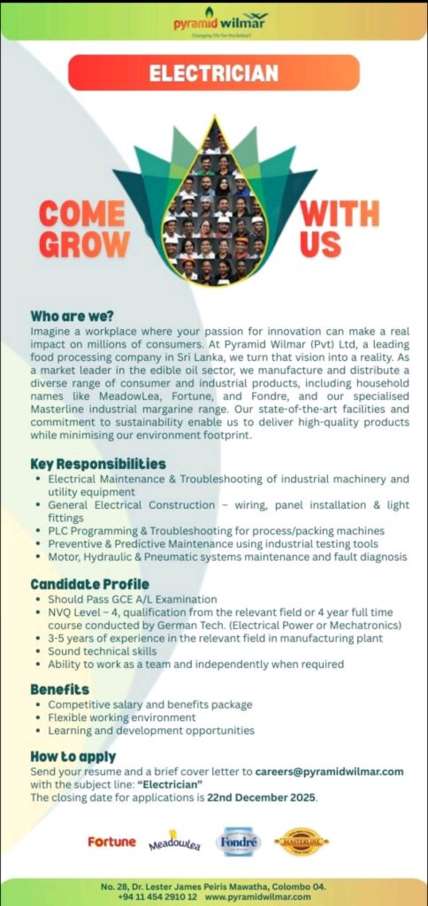 Drive Growth, Inspire Teams, Shape Success – We are Hiring “Electrician”
