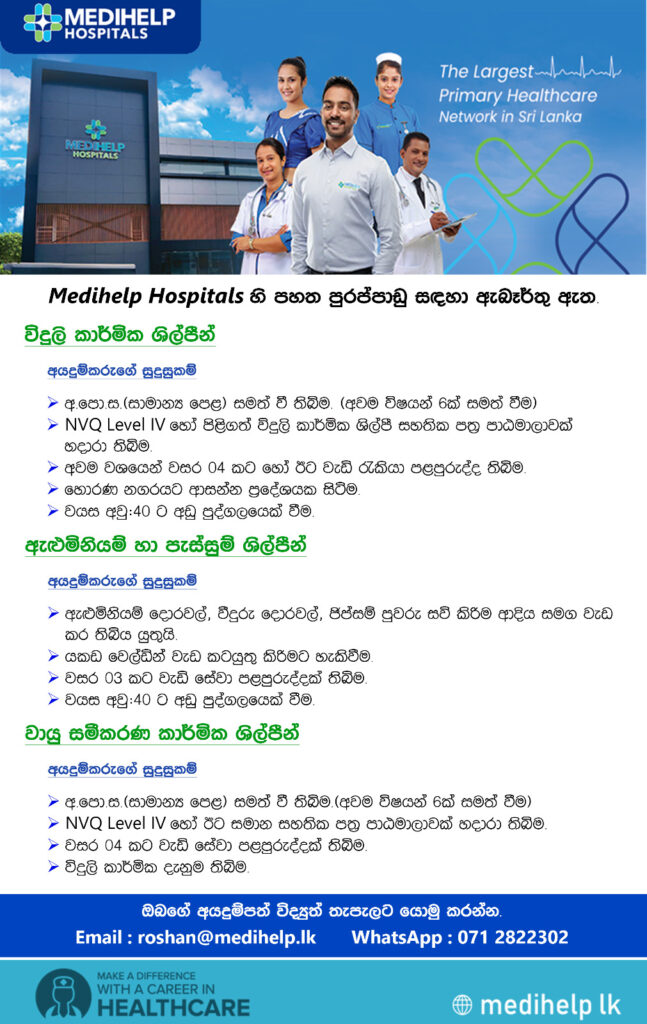 Apply now :- roshan@medihelp.lk