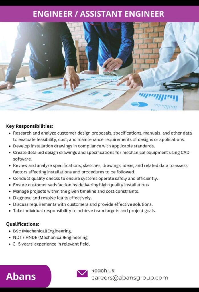Engineering Engineer/ Assistant Engineer Mechanical 10 months ago Company:- Abans Send your CV :- careers@abansgroup.com Sri lanka Engineering Job Vacancy Post navigation Previous: Web Developer RemoteNext: Marketing Officer Part Time Related Vacancies Draughtsman Engineering Quality Assurance Quantity Surveyor Supervisor Supply chain Duty Project Manager / Project Engineer/ Site Engineer/ Supervisor/ QA/ QS/ Draftsman/Store Keeper 14 hours ago Engineering Quantity Surveyor Supervisor Site Engineer/ Technical Officer/ QS/ Supervisor/ Trainee 16 hours ago Engineering Technician Solar Technician 16 hours ago