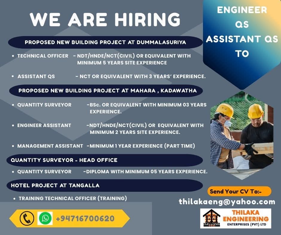 Apply Now :- thilakaeng@yahoo.com
