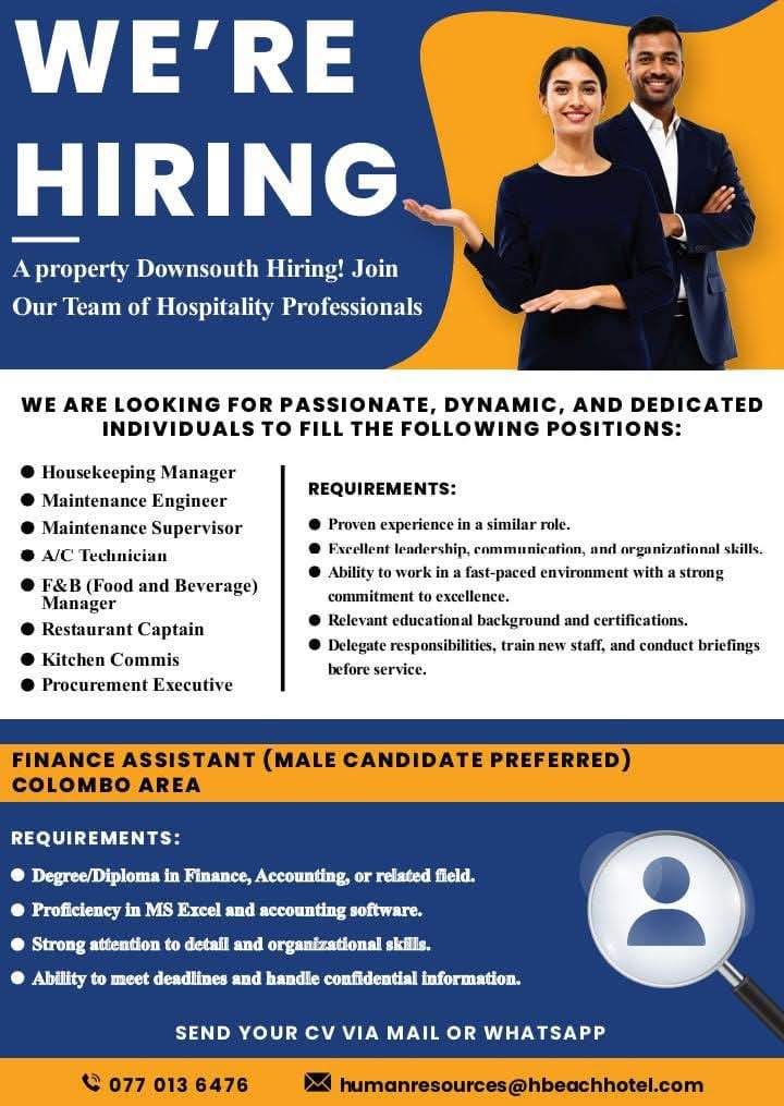 Engineer / Supervisor / Housekeeping / Technician / Procurement/ Finance/ F&B