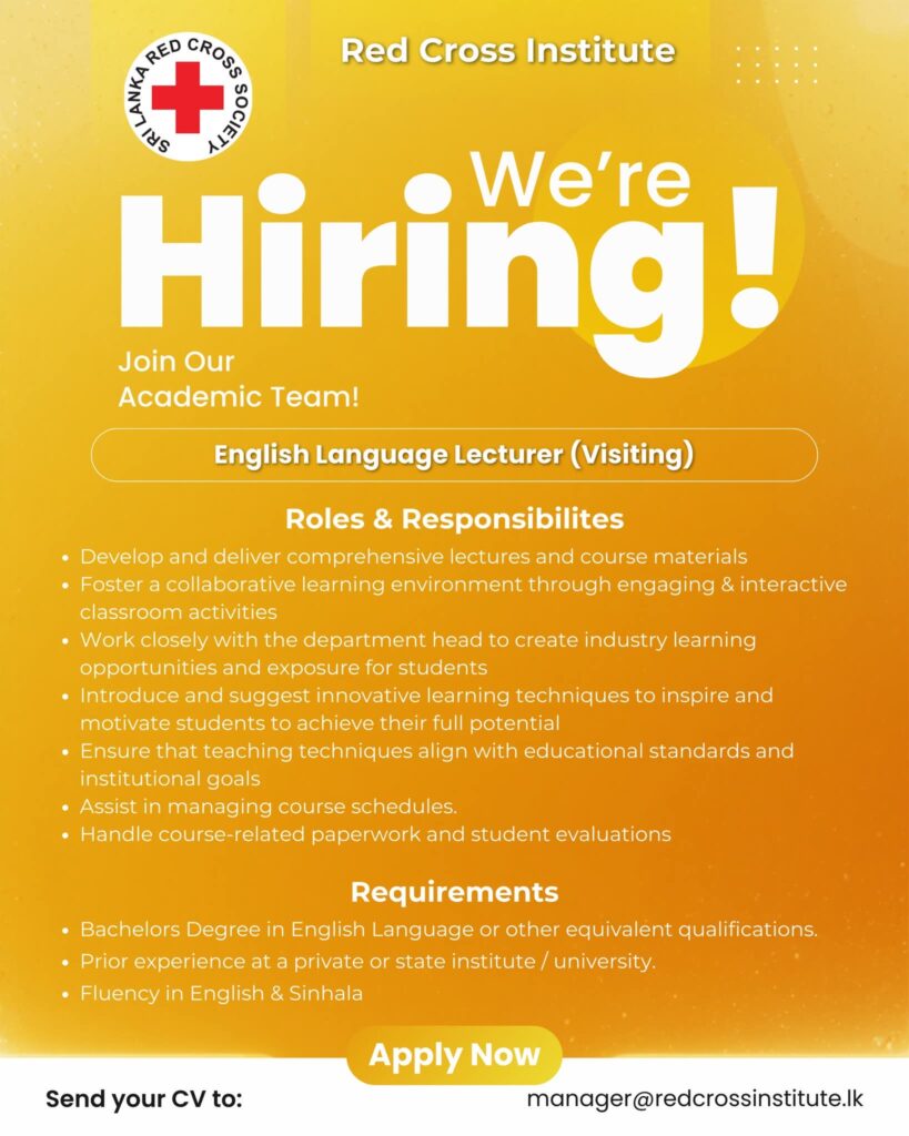 Apply Now:- manager@redcrossinstitute.lk